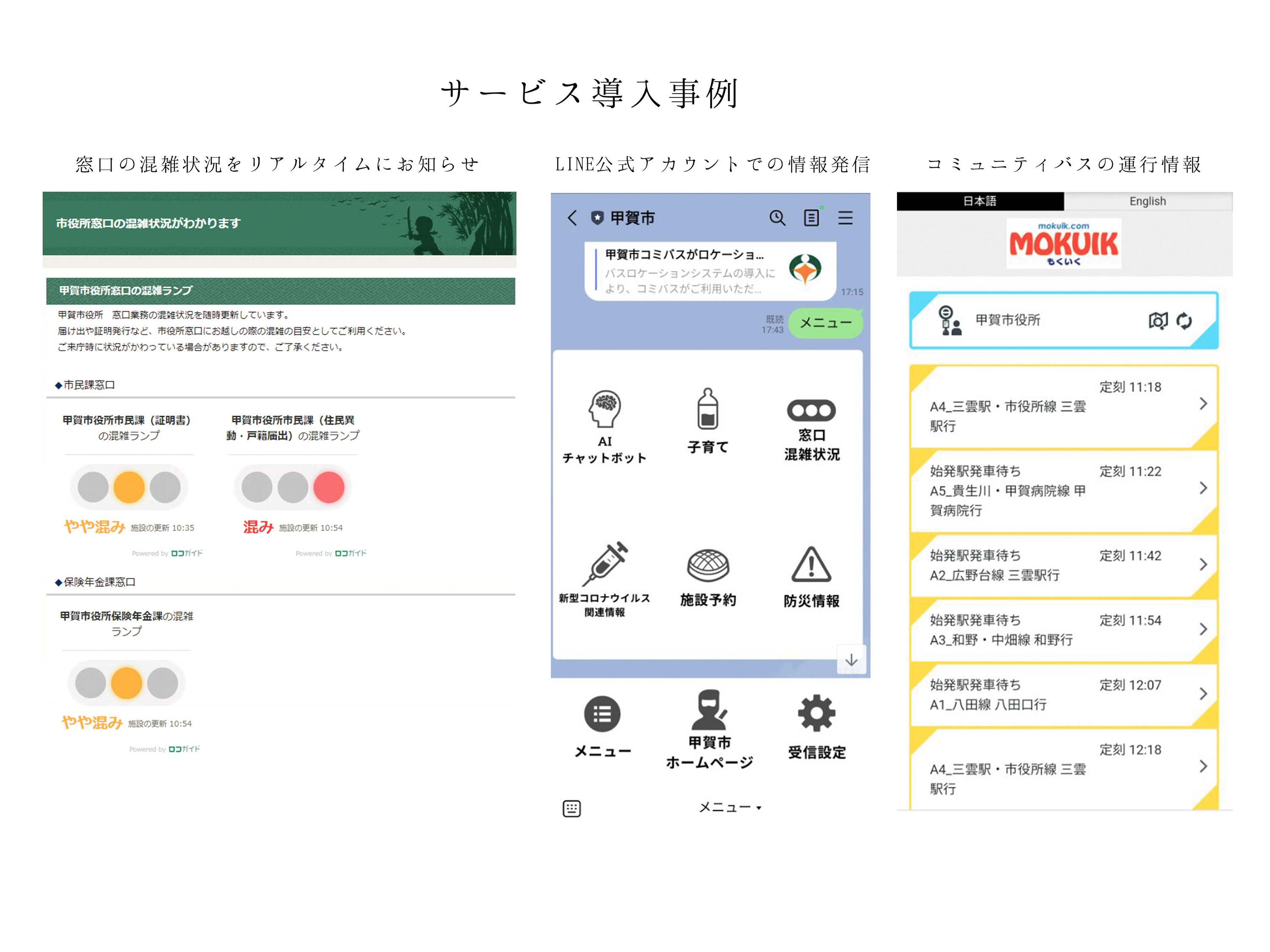 具体的な取り組みとして、AIチャットボットによる24h問い合わせ対応、コミュニティバスの運行情報や窓口の混雑状況をリアルタイムにお知らせする仕組み、LINE公式アカウントでの情報発信、各種オンライン予約・申請の受付など、暮らしの中で便利さを実感していただけるサービスの提供に力を入れて進めている最中です。